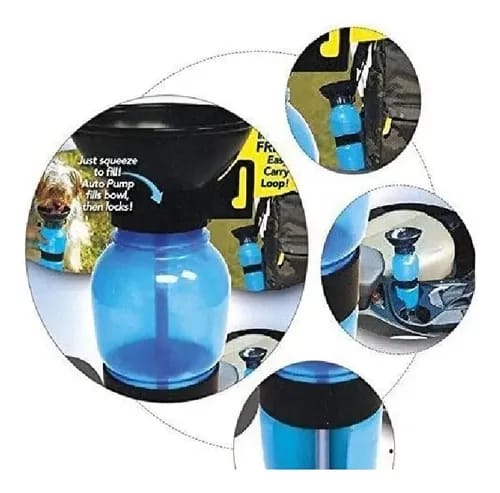 Mantén a tu peludo siempre feliz y bien hidratado en cada paseo o viaje. Este práctico bebedero portátil 2 en 1 incluye un depósito de agua y un pequeño recipiente tipo cuenco, ideal para que tu mascota pueda beber cómodamente sin derrames.